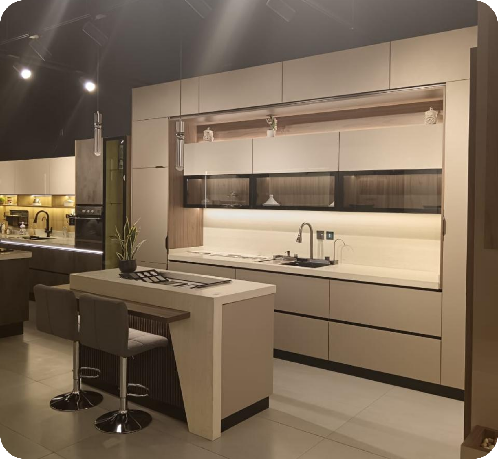 تقديم مطابخ تلبي احتياجات عملائنا بأسلوب يجمع بين الوظيفة والأناقة، مع الحرص على استخدام أفضل المواد وأحدث التقنيات، وتوفير خدمة متميزة وتجربة فريدة تجعل من المطبخ مساحة إبداع وراحة تعكس ذوق كل عميل وتفاصيل أسلوب